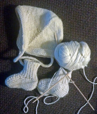 Mateo’s Mamma (Erin) knit a sweater for him and he needed a hat and booties to go with it.