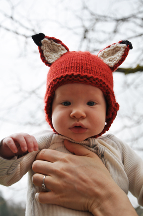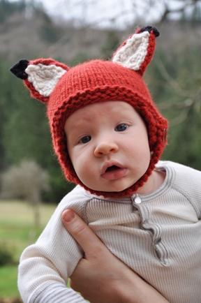 Ear pattern is from Kristen Cooper‘s Woodland Fox Baby (Ravelry Link) hat patern.